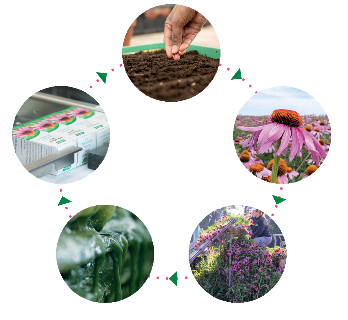 Höchste Sorgfalt bei der Pflanzenkultivierung – für eine gleichbleibend hohe Qualität unserer pflanzlichen Rohstoffe: Unsere Echinacea purpurea stammt aus eigenem Saatgut, das unter kontrolliert biologischen Bedingungen angebaut wird. Die Böden sind frei von chemischen Zusätzen, werden mit eigenem Kompost angereichert und von Hand gepflegt – für eine nachhaltige Kultivierung im Einklang mit der Natur.
